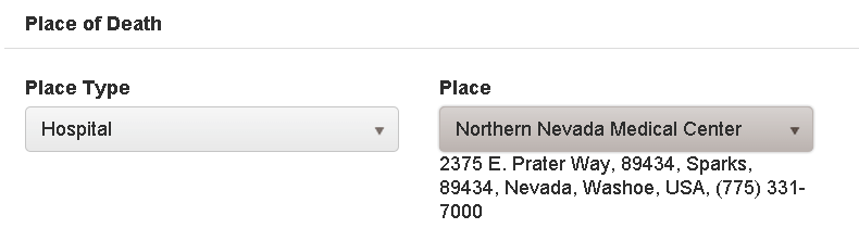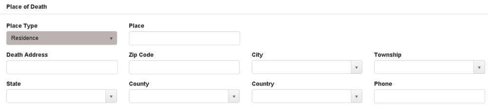 Select a Place Type†from the drop down list. Depending on the selection made in place type will denote the available data entry for place and address.